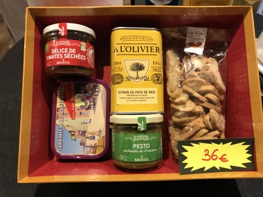 Panier composé de produits exclusivement français et pour la plupart locaux. 1 Délice Pesto de 90gr + 1 Délice gourmand divers (suivant dispo) de 90gr Croquets au fromage Bidon huile d'olive au citron de Nice 250ml Sardines à la Tropézienne Faites plaisir, indiquez-nous l'adresse et nous envoyons partout en France ! »» Ajouter au Panier «« |
